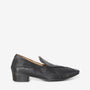 The 224400 Nero heeled loafers by 2 Baia Vista are crafted in supple black leather, featuring sculptural crossed seam detailing, a softly squared toe, and a low block heel. Effortlessly blending artisan character with minimalist charm, this slip-on style offers a fresh, modern take on the classic loafer—perfect for elevating both tailored and casual looks.